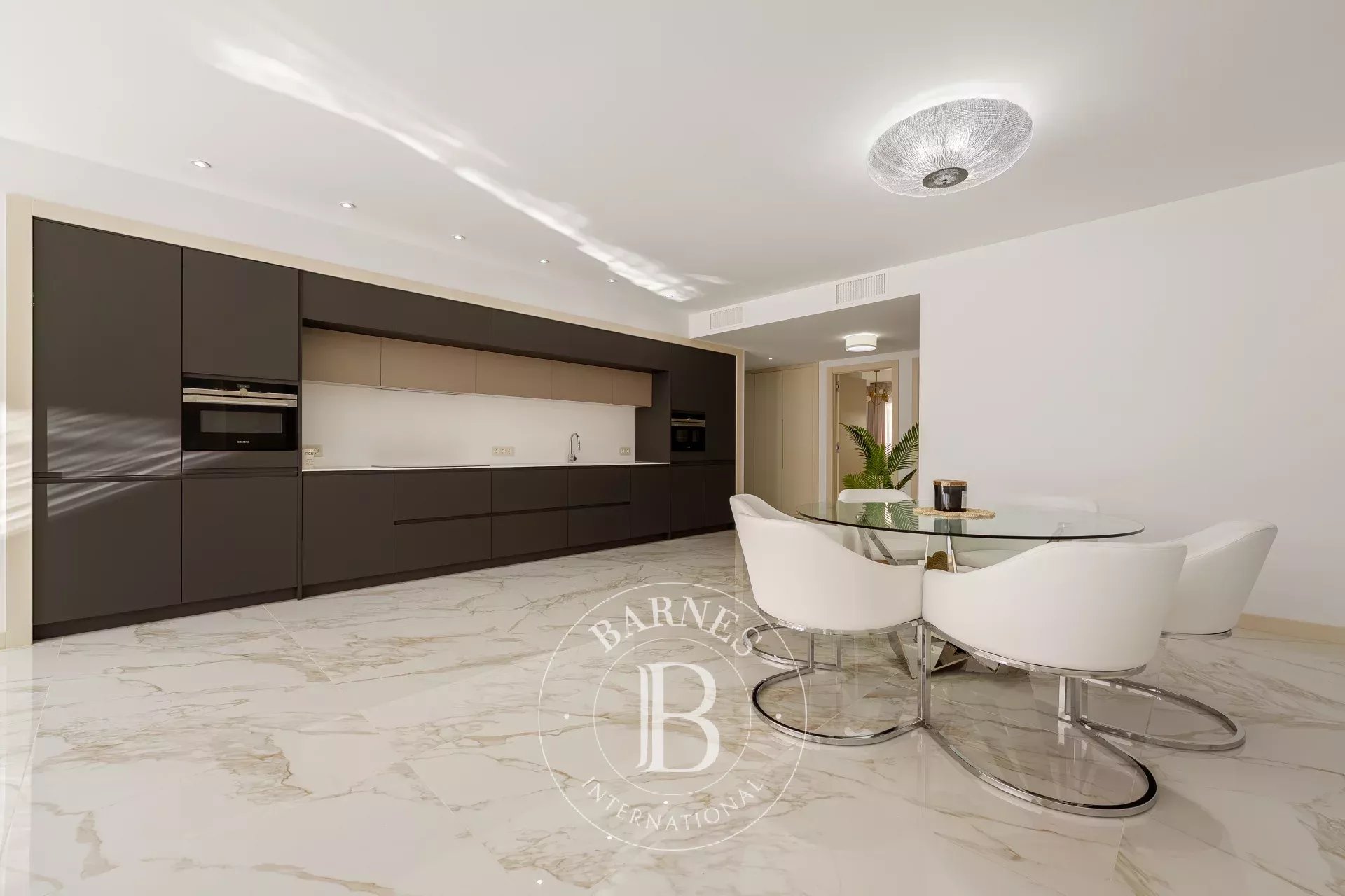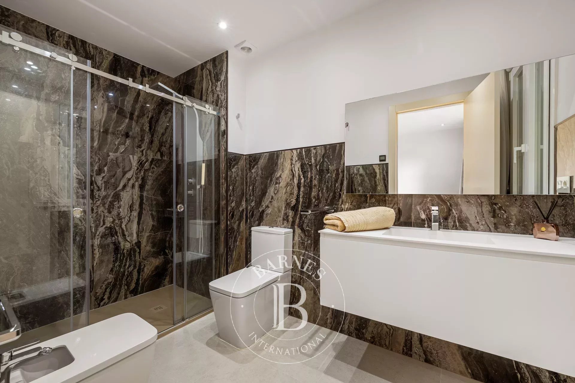 Totalmente renovado con materiales de alta calidad, la propiedad cautiva por su diseño contemporáneo, sus acabados cuidados y su luminosidad excepcional. Los tres dormitorios cuentan cada uno con su baño en suite, garantizando comodidad e intimidad. La suite principal se distingue por un vestidor y acceso directo a la terraza, ideal para disfrutar plenamente del entorno único y del clima de la Costa del Sol. La residencia disfruta de una ubicación excepcional, a pocos pasos del puerto deportivo, las playas, restaurantes y tiendas de lujo, mientras ofrece un entorno tranquilo, seguro y verde. Un estacionamiento privado en garaje completa esta propiedad, rara en el mercado.