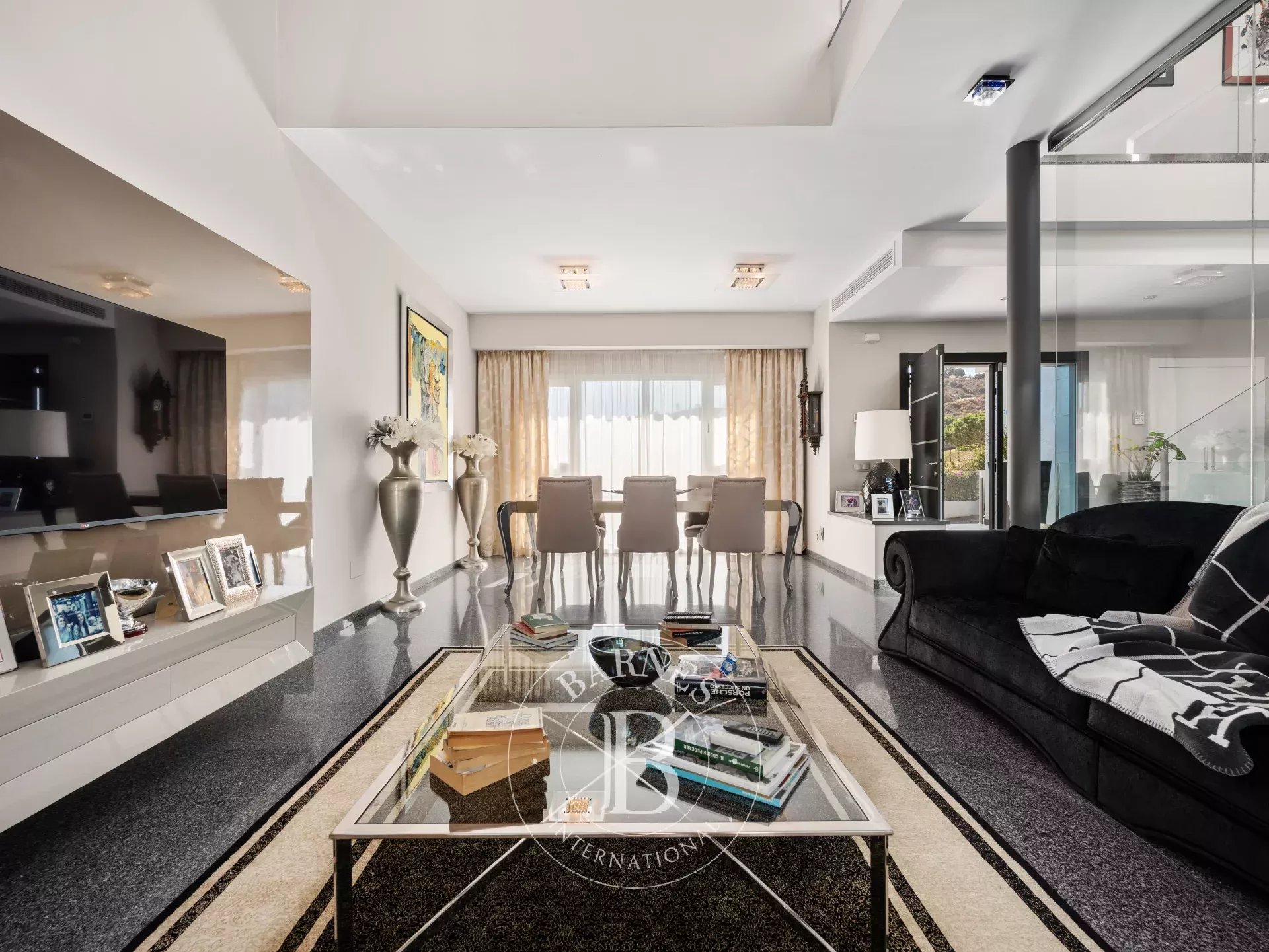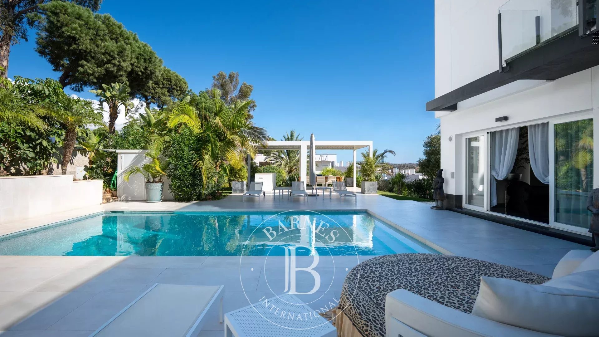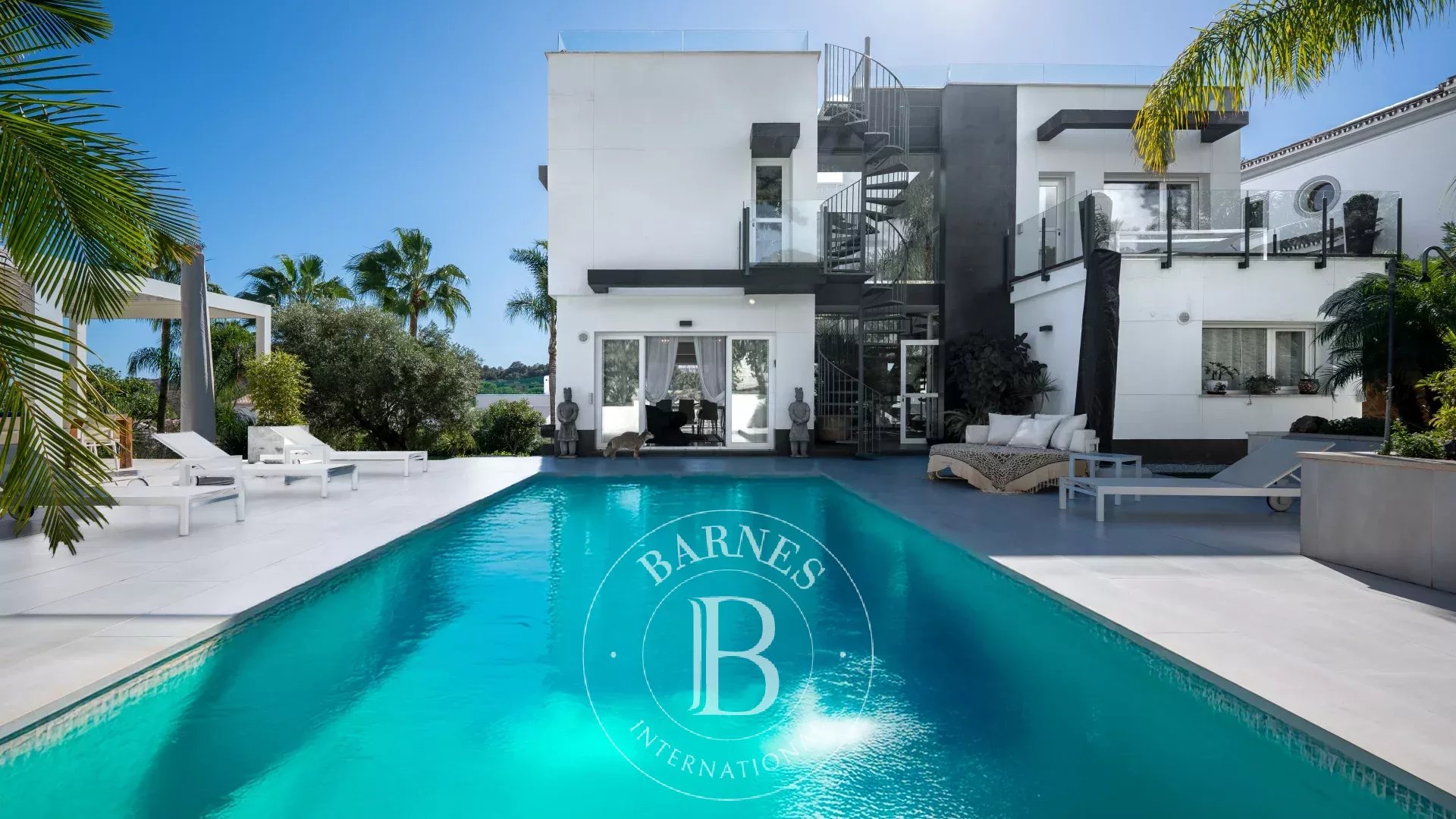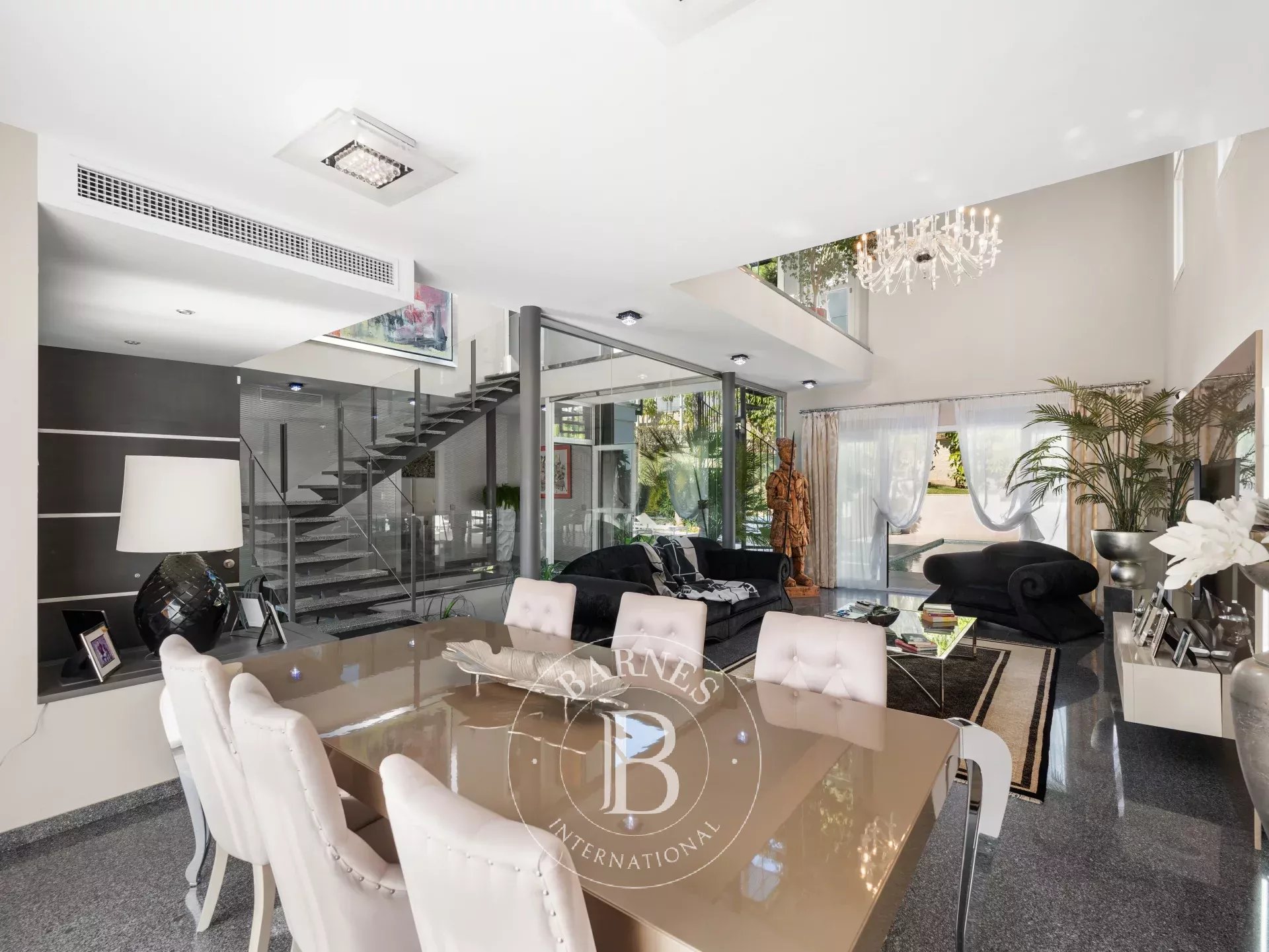 Construida en tres niveles, la propiedad destaca por su ambiente refinado y la perfecta armonía entre el interior y el exterior. Al entrar, la vista se dirige hacia el jardín tropical y la resplandeciente piscina, un auténtico remanso de serenidad. Las salas de recepción se suceden en una serie de espacios fluidos, donde el diseño contemporáneo y la elegancia atemporal interactúan en perfecta simbiosis.