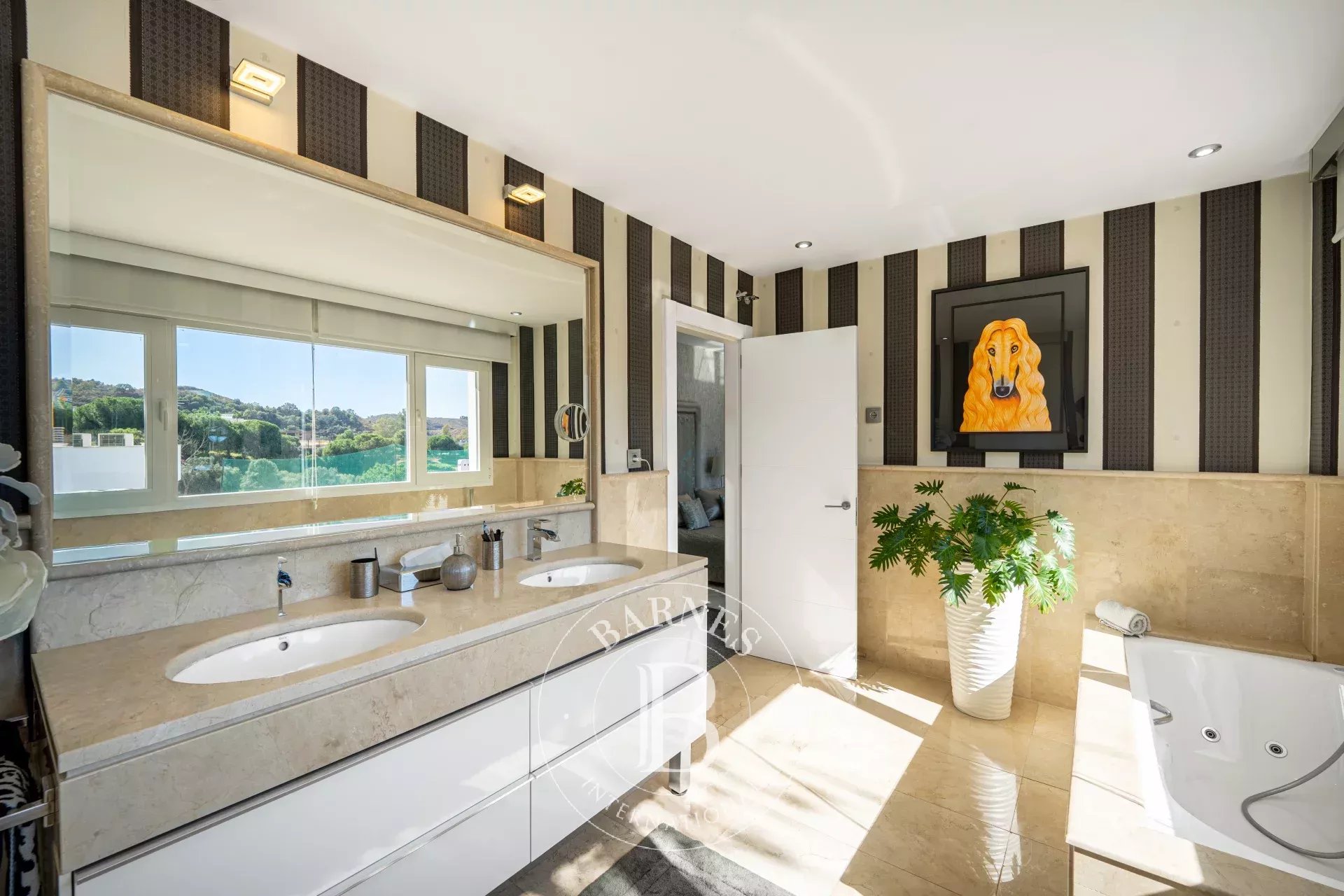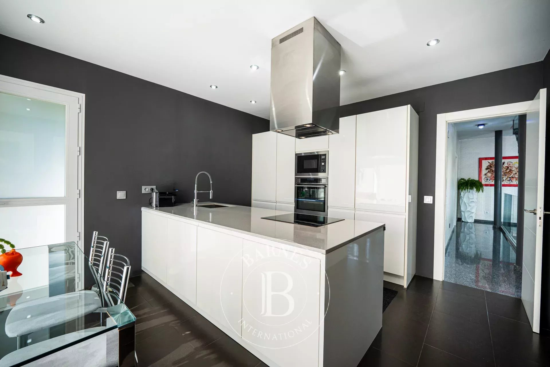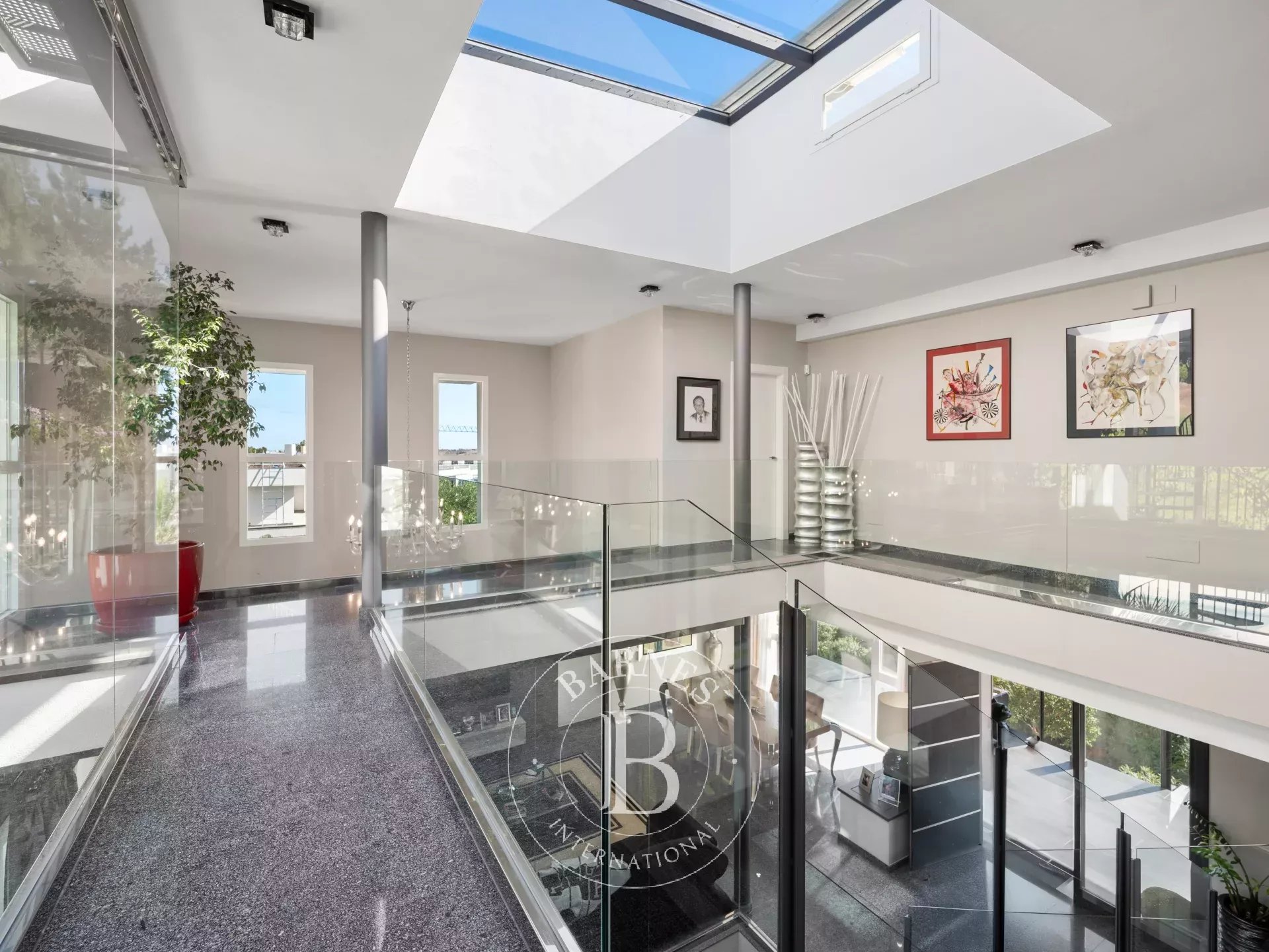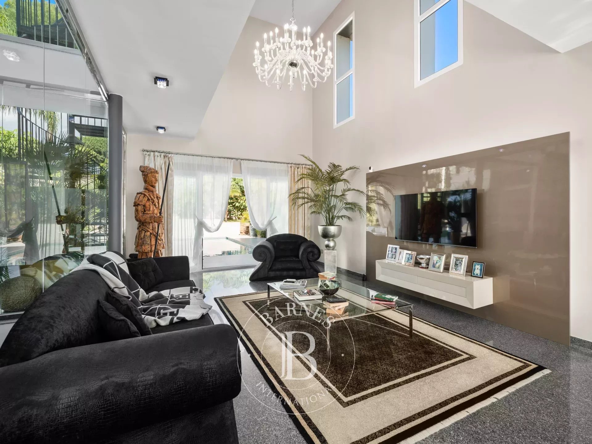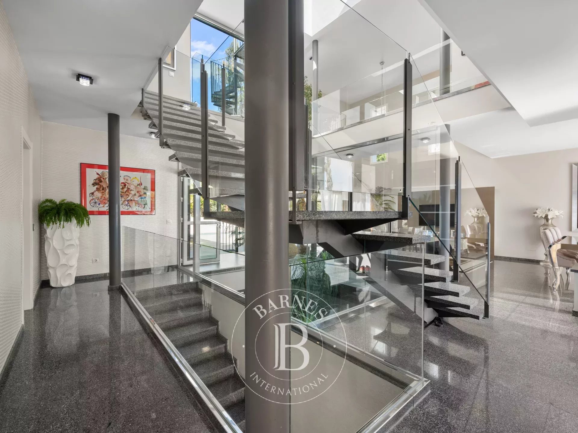Construida en tres niveles, la propiedad destaca por su ambiente refinado y la perfecta armonía entre el interior y el exterior. Al entrar, la vista se dirige hacia el jardín tropical y la resplandeciente piscina, un auténtico remanso de serenidad. Las salas de recepción se suceden en una serie de espacios fluidos, donde el diseño contemporáneo y la elegancia atemporal interactúan en perfecta simbiosis.