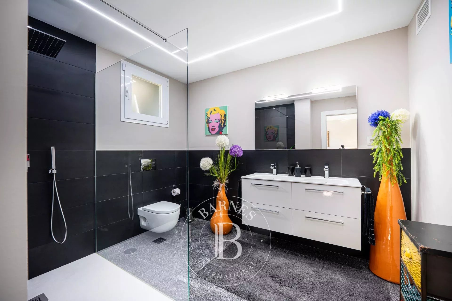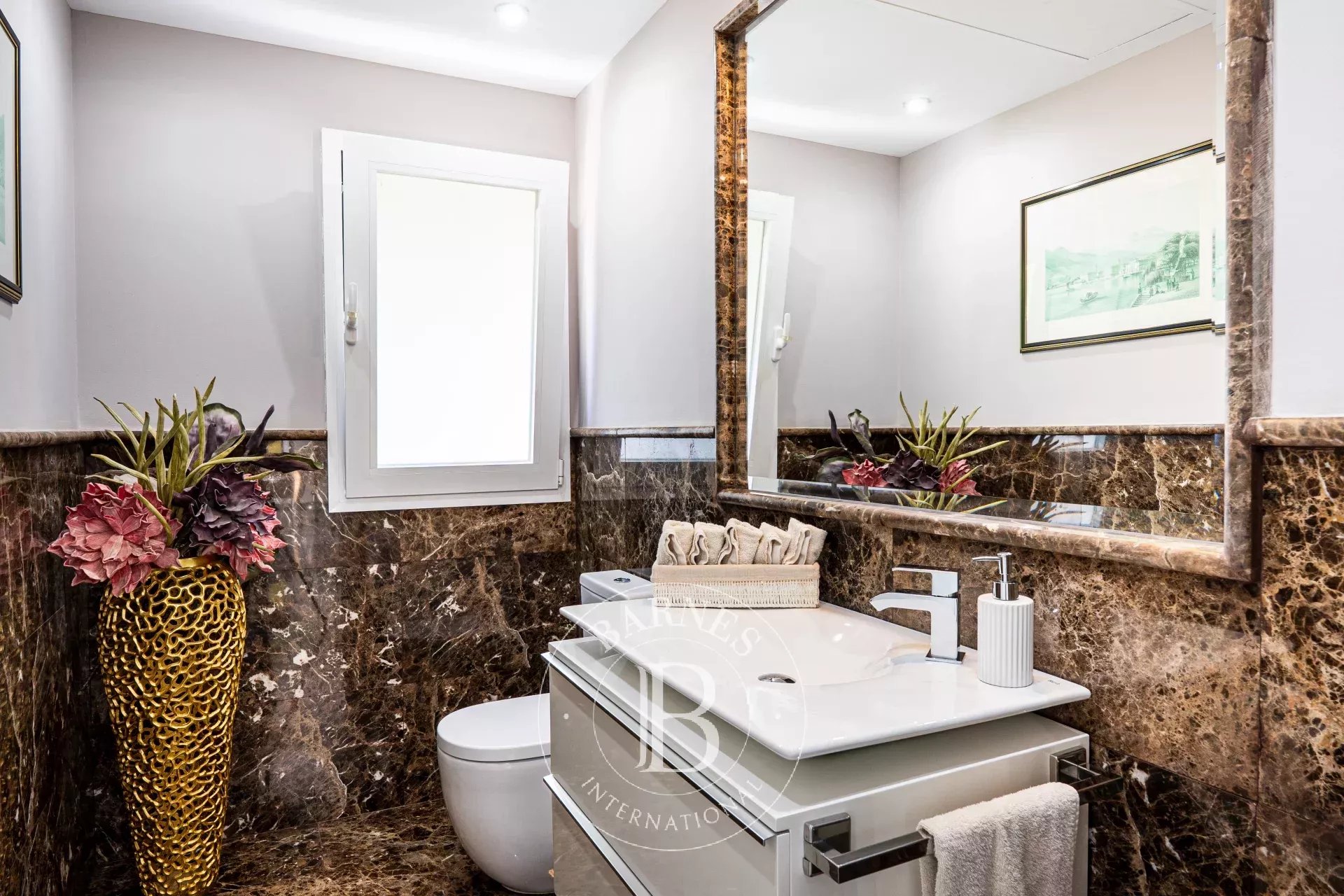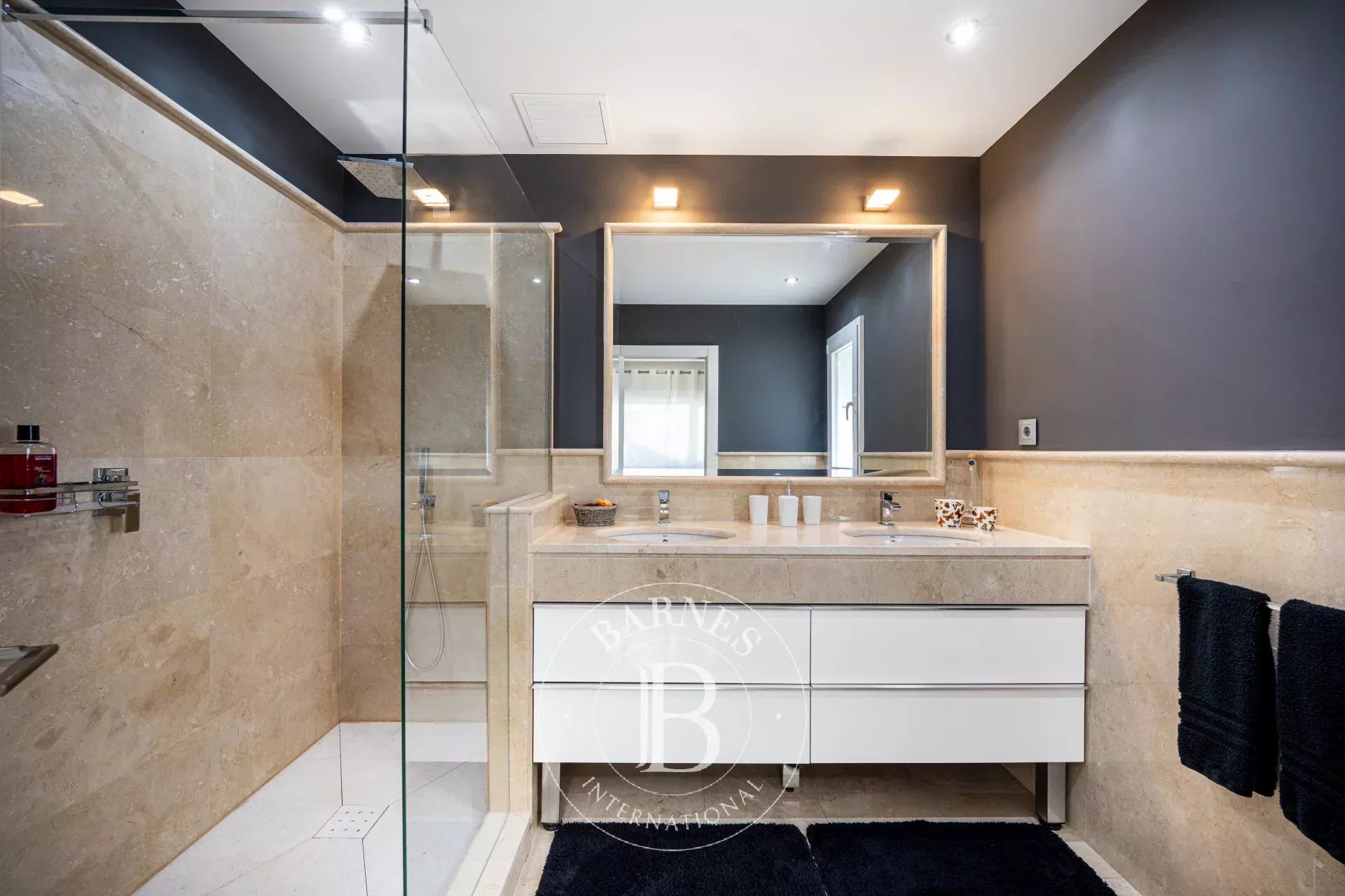Las cinco habitaciones en suite, cada una con su propio cuarto de baño privado, ofrecen un confort y una privacidad absolutos. Los materiales nobles, los acabados a medida y la luz omnipresente confieren a toda la propiedad una sensación de suavidad y perfección.